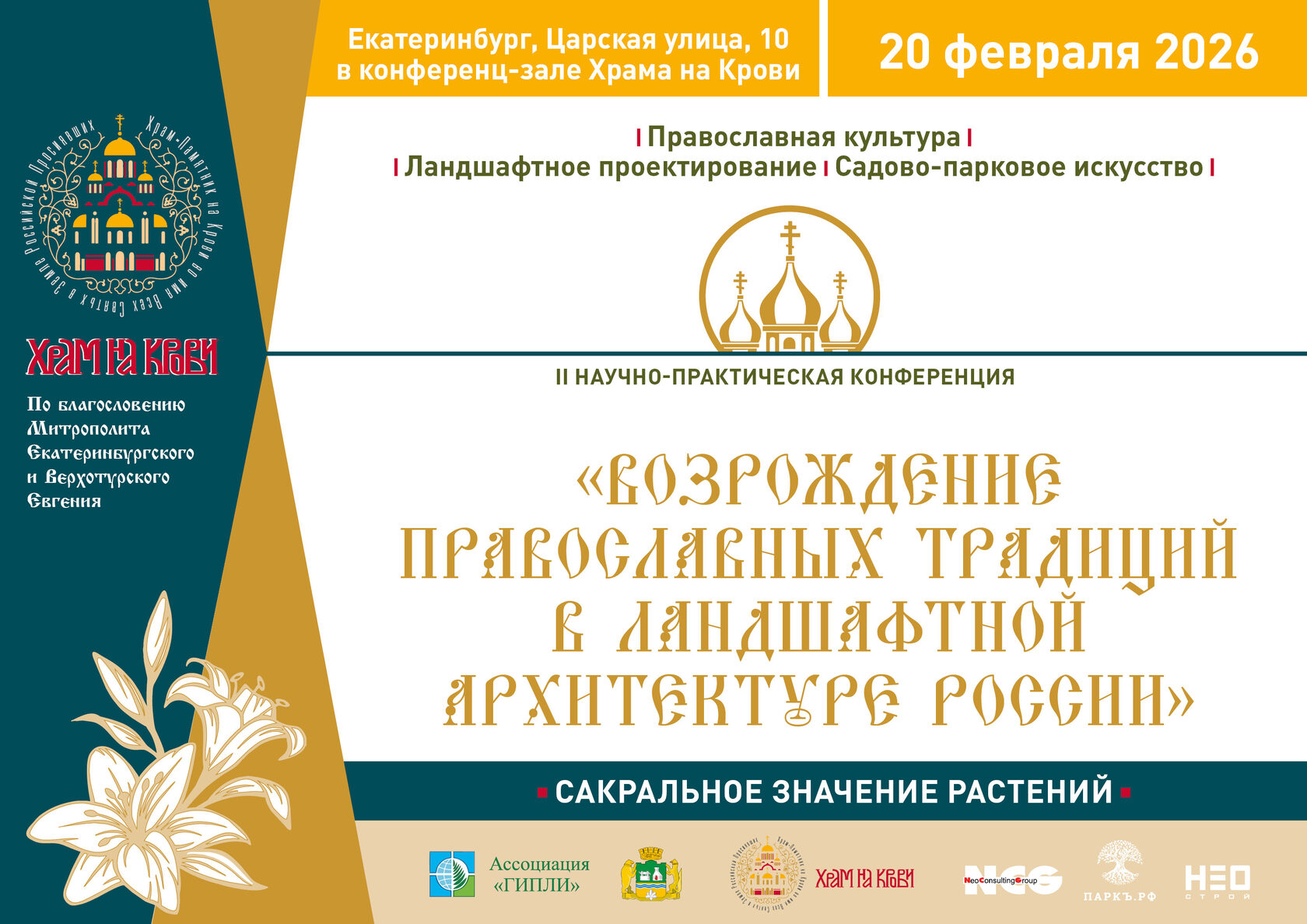 20 февраля 2026 года состоится II научно-практическая конференция «Возрождение православных традиций в ландшафтной архитектуре России» в г. Екатеринбурге в конференц-зале Храма-памятника на Крови (г. Екатеринбург, ул.Царская, 10).
